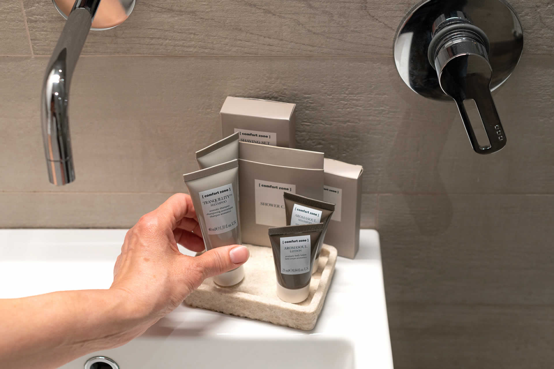 Abbiamo scelto di vziiare i nostri ospiti con i prodotti Comfort Zone - Conscious Skin Science, una linea di prodotti professionali per lo skin care di Davines Group. SENZA siliconi, derivati animali, oli minerali, coloranti artificiali, SLS e SLES e made in Italy. Il meglio di scienza e della natura per offrire esperienze uniche.